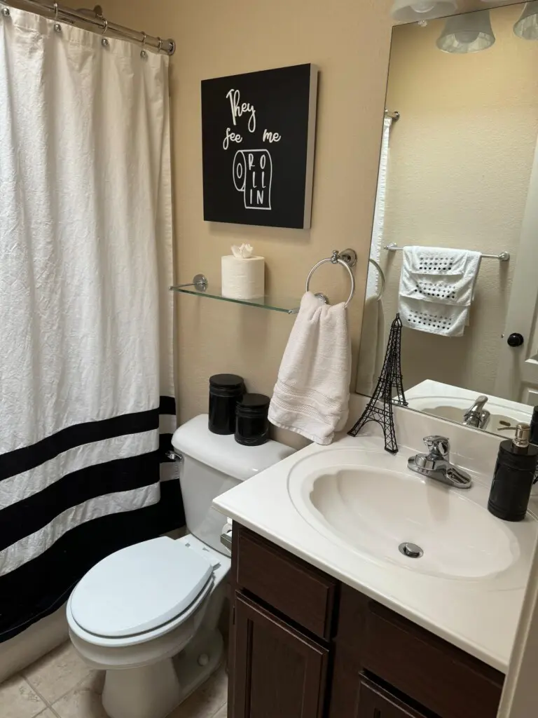 Descending from the Great Room to the lower level, you’ll first come upon a full bathroom, flanked by two bedrooms.