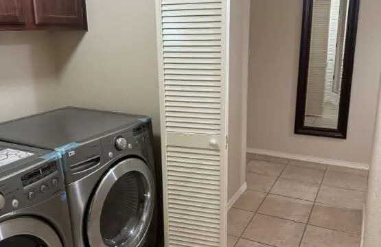 Beyond the Bunk Burrow, you’ll find two additional rooms. The first is the laundry room, where a full-sized front-loading washer and dryer await your use. Conveniently, an ironing board and iron are also available—though don’t worry, we’re not too formal here in the mountains!